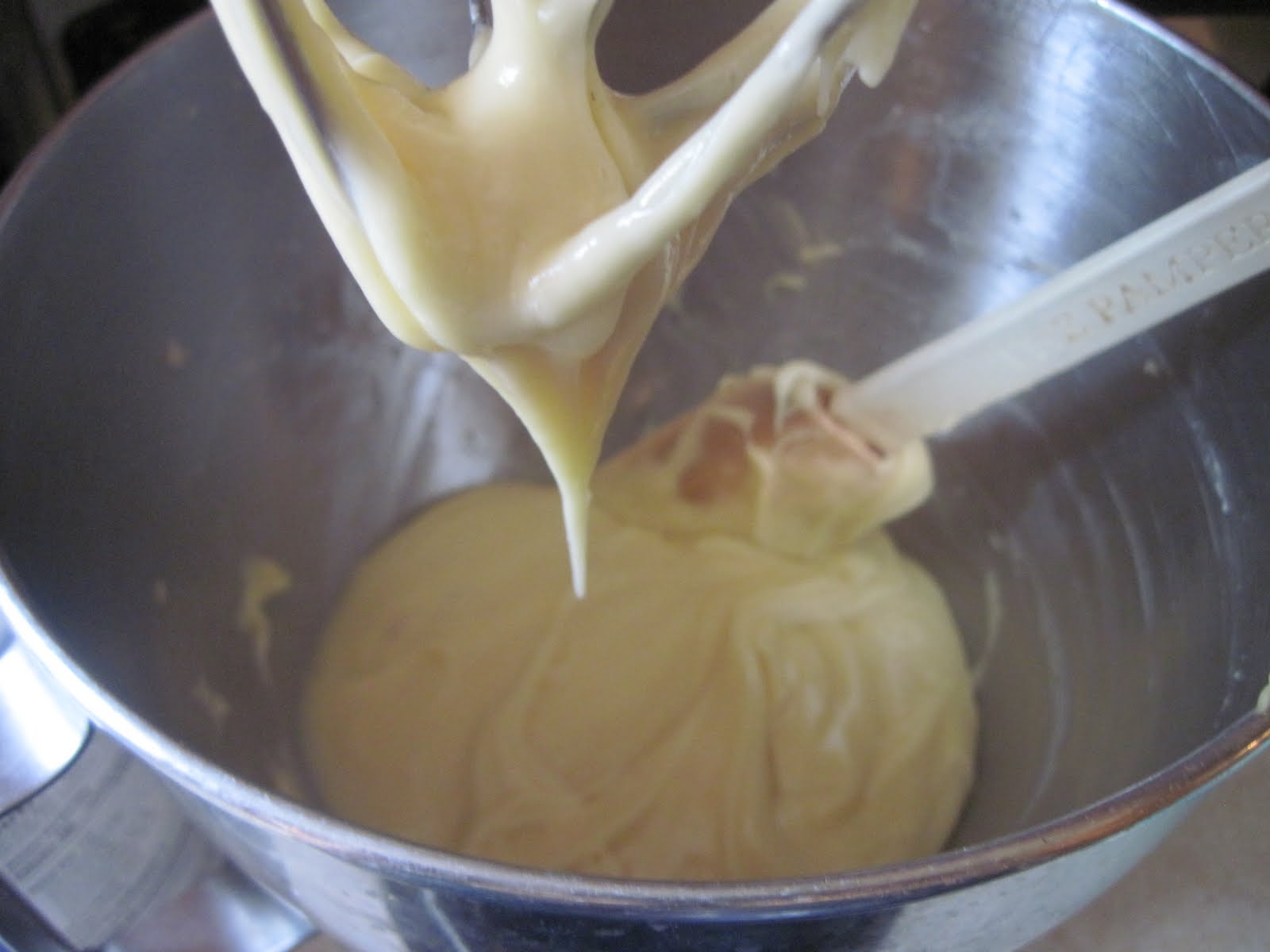 Remove from heat and pour into the bowl of an electric mixer (you can mix by hand if you want).